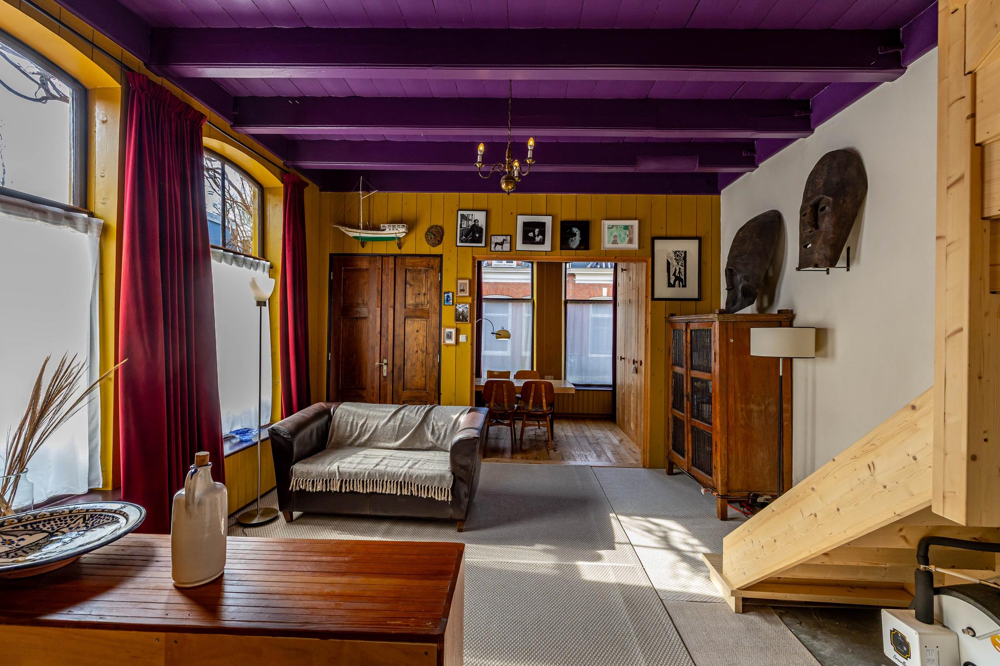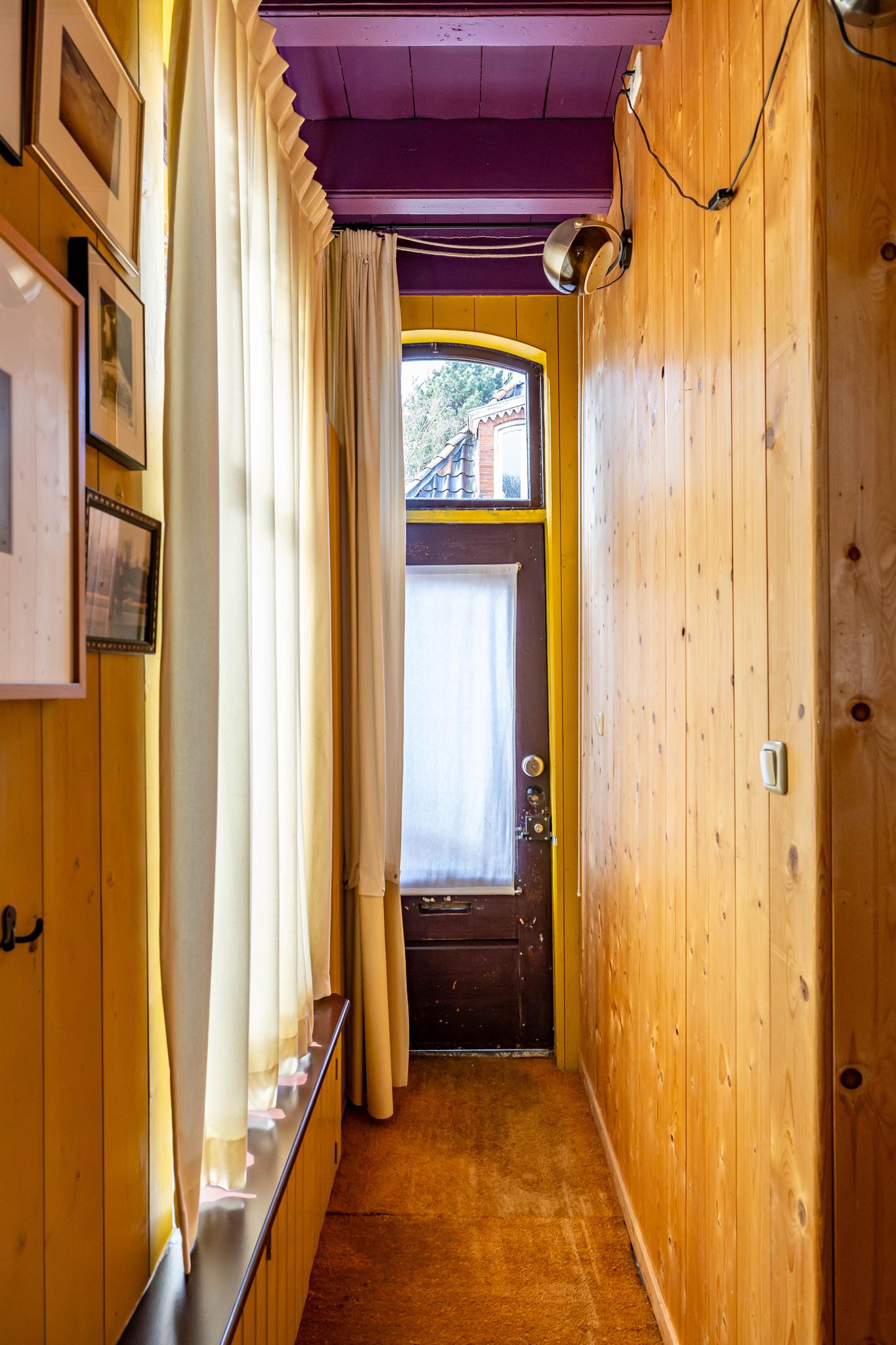Een ander opvallend kenmerk van deze woning is het prachtige paarse plafond. Dit unieke detail geeft de woning een speelse en creatieve touch, perfect voor de liefhebber van bijzondere interieurs.